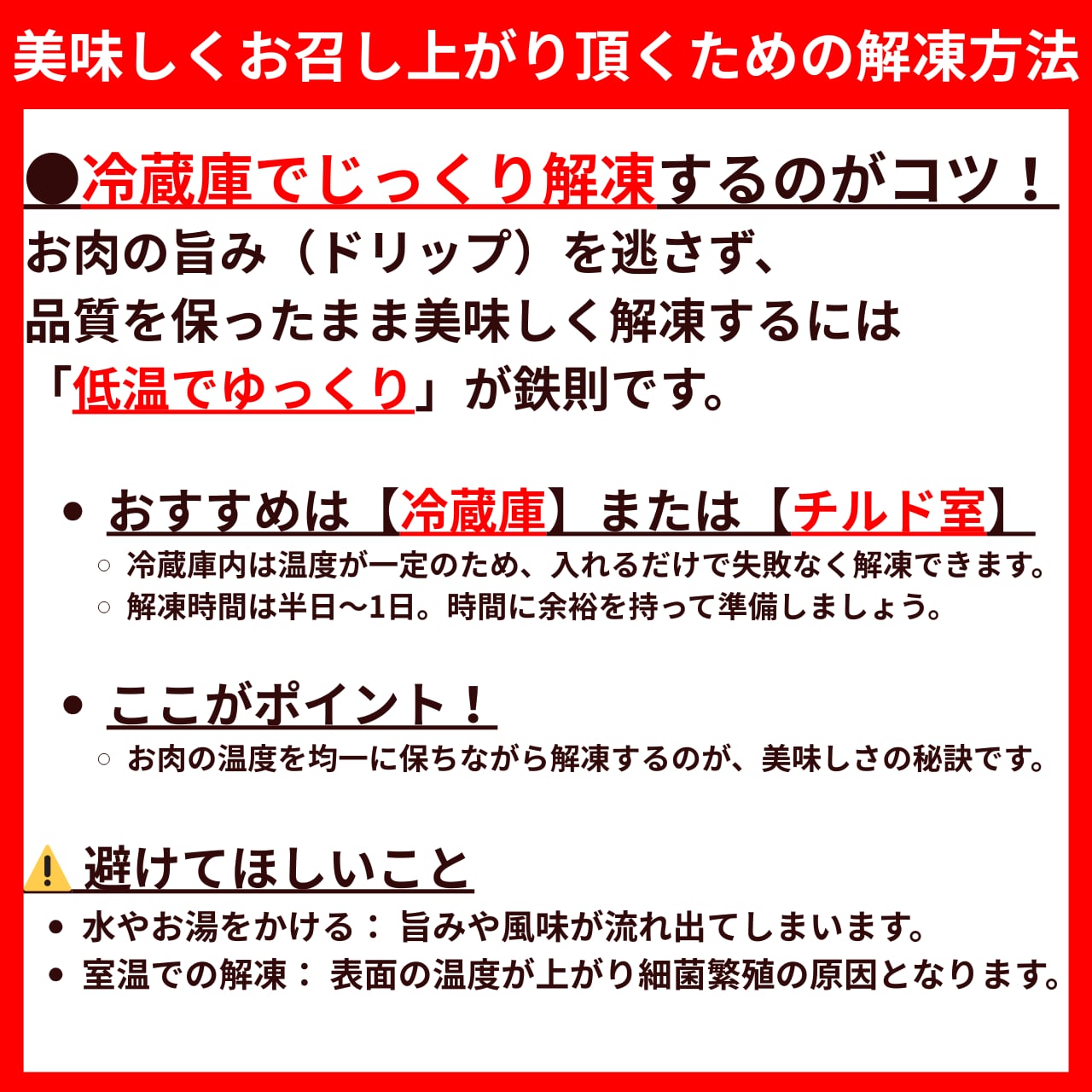 美味しく食べるコツ: 召し上がる半日〜1日前に冷蔵庫(あればチルド室)へ移し、低温でじっくり解凍してください。
