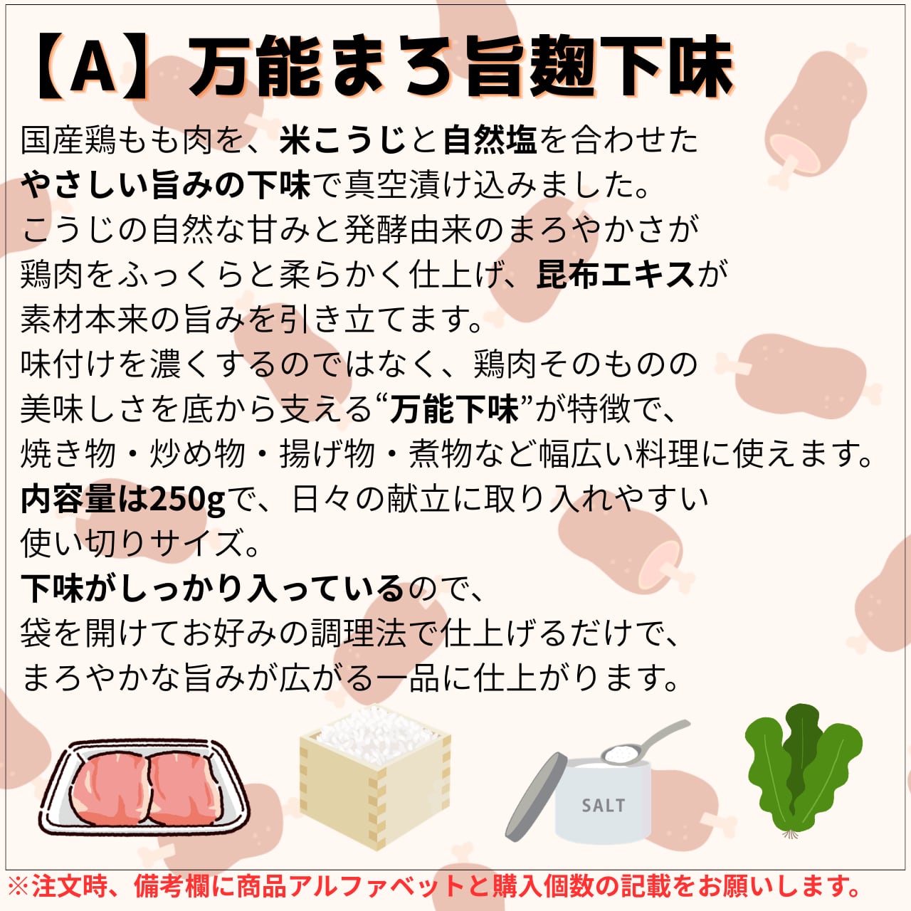 【A】万能まろ旨麹下味250g:【増量中】麹の力で肉質驚くほど柔らか。アレンジ自在の万能選手。
