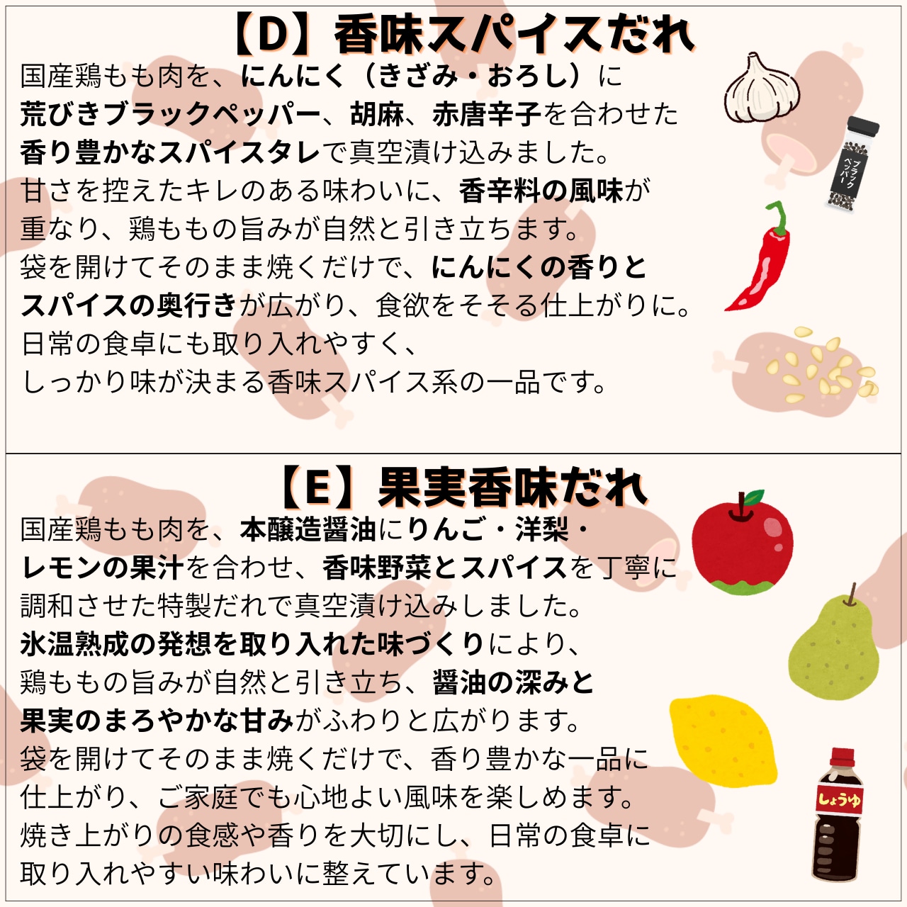 【D】香味スパイスだれ 200g:にんにくと黒胡椒がガツンと効いた、お酒にも合うキレ味。