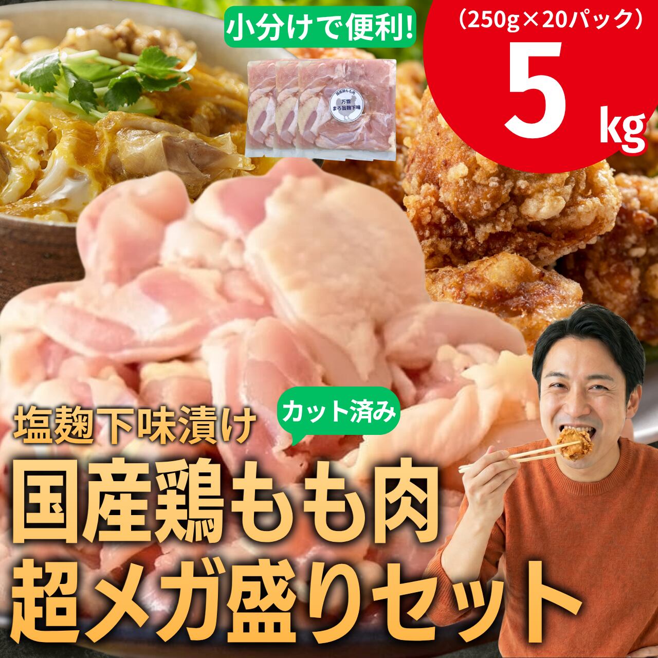 塩麹下味漬け国産鶏もも肉メガ盛り5kg(250g×20パック)
